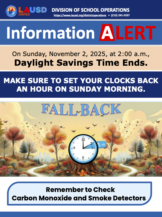 Daylight Savings Ends Sunday, November 2 at 2:00 AM