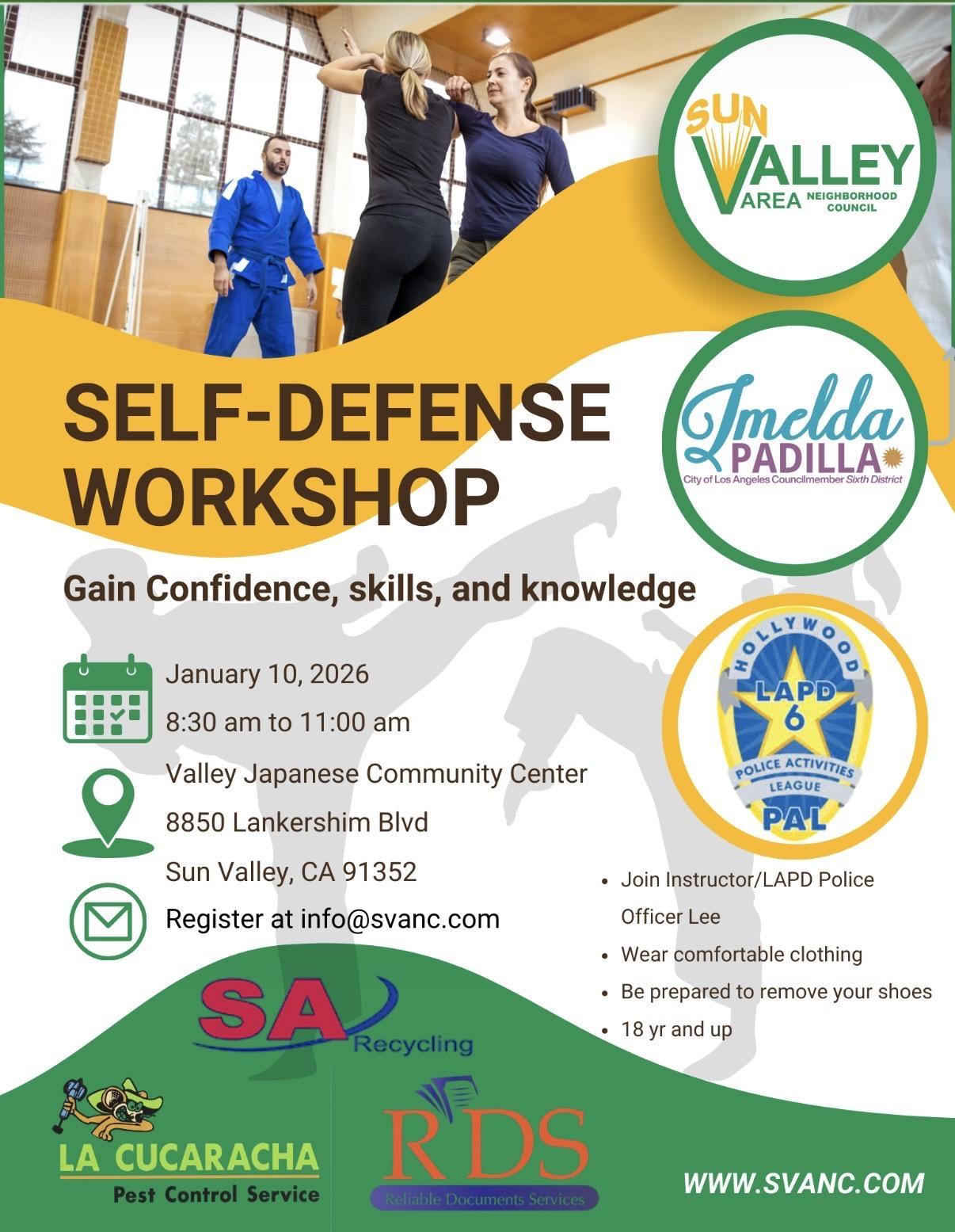 Self-Defense Workshop January 10, 2026 from 8:30 AM to 11:00 AM Gain Confidence, skills, and knowledge